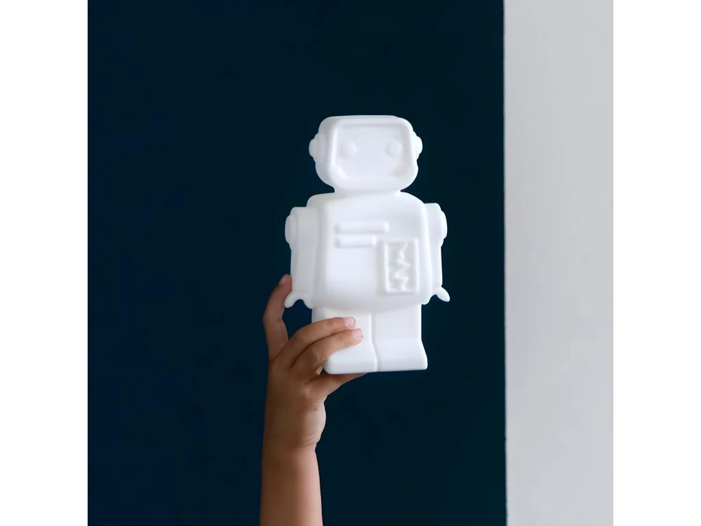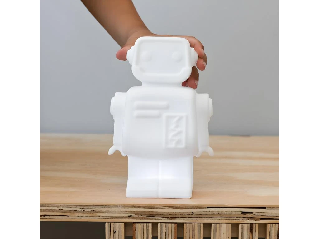 Une jolie lampe veilleuse pour la chambre de votre enfant. Hero le robot deviendra l’ami qui vous surveille la nuit. Un minuteur de 15 minutes permet de s’endormir tranquillement. Dimensions : 33.5 x 29 x 20cm Matière : pvc Câble de recharge inclus Autonomie de 10 Ă 20h
