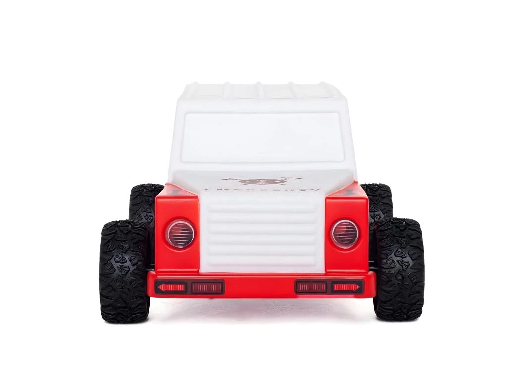 Veilleuse Voiture de Pompiers LED Voiture roulante Livrée avec un pack d’autocollants pour décorer la voiture Lumière multicolore par défilement – Lumière LED – Mode normal – Mode minuterie : s’éteint au bout de 15 minutes – Interrupteur ON/OFF sous la licorne – Fonctionne sur piles : 3 piles AAA non fournies – En PVCDimensions : Hauteur 8.5 cm – Largeur 12 cm – Profondeur 20 cm